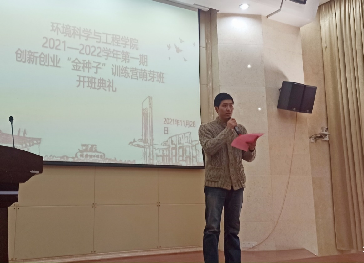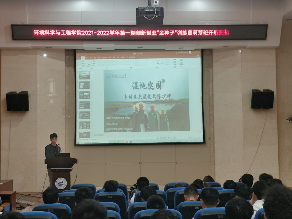 会议伊始,由郝文佳书记为开班仪式致辞,他指出创新创业,不仅有利于拓宽大学生的就业门路,也为社会创造更多的就业岗位,而且有利于实现广大青年大学生的个人价值。开展“金种子”训练营萌芽班对我院深化创新创业教育改革具有重要意义。接着由周沁宇同学进行创新创业的经验心得分享,他还通过对他们第七届“互联网+”国家级银奖项目——湿地突围-乡村生态建设的保护神的开展过程进行分享,让同学们更加了解了开展一项创新创业项目的详细过程,以及所需要具备的能力和所面对的挑战。