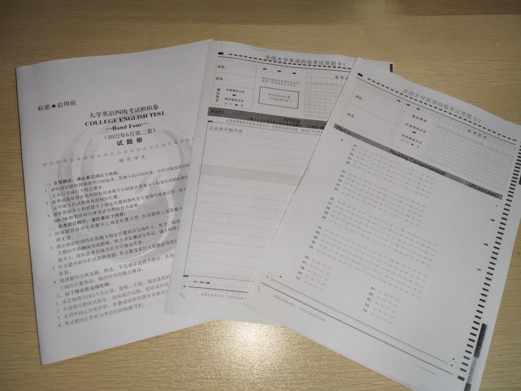 本次模拟考是严格遵循全国大学英语四级考试标准进行,统一印制试卷、答题卡,规范考试限时。同学们按作文、听力、阅读等考试流程有序进行。模拟考试过程中,考生们认真审题,严谨作答,没有丝毫懈怠。