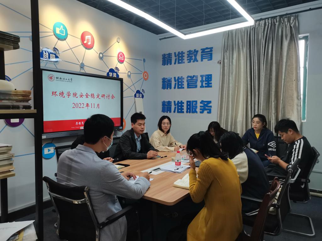 为进一步强化安全意识和责任意识,抓好安全稳定工作,按照学校稳定安全工作会议部署,11月1日下午,环境学院在萃华楼12408大数据工作室组织召开安全稳定研讨会,学院全体专兼职辅导员参加,会议由学院党委副书记郝文佳主持。