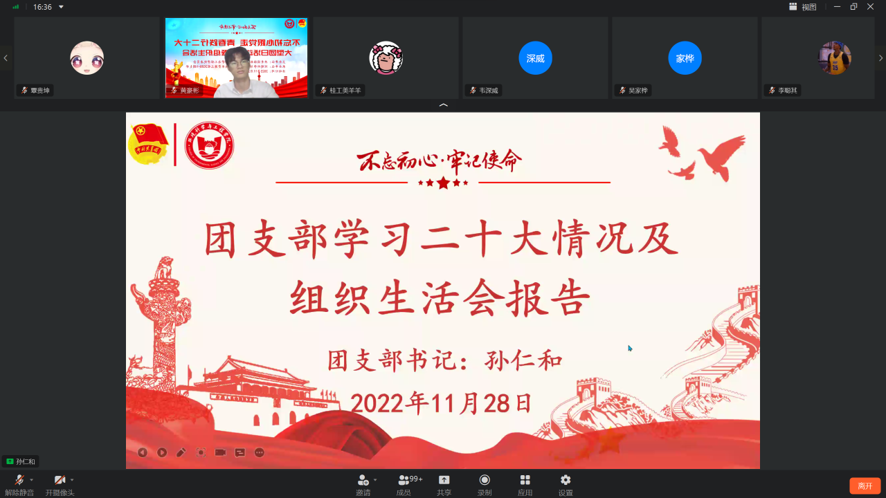 2022年11月28日,我院通过钉钉会议举行beat365手机版官网入口“不忘初心跟党走,青春践行二十大”示范性团日活动,本次示范性团日活动由水文与水资源2020-1班团支部承办。