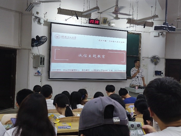 6月19日,我院组织学生在04621开展诚信主题会。孙云龙老师讲述自己日常生活中有关诚信的事例,从自身出发,与同学们相互交流。在交流过程中,学生们深刻意识到诚信是立人之本,守诚信对于当代大学生而言更是一件责无旁贷的事。同时认识到诚信是大学生树立理想信念的基础,是大学生全面发展的前提,是大学生进入社会的敲门砖,也是成功路上的垫脚石。