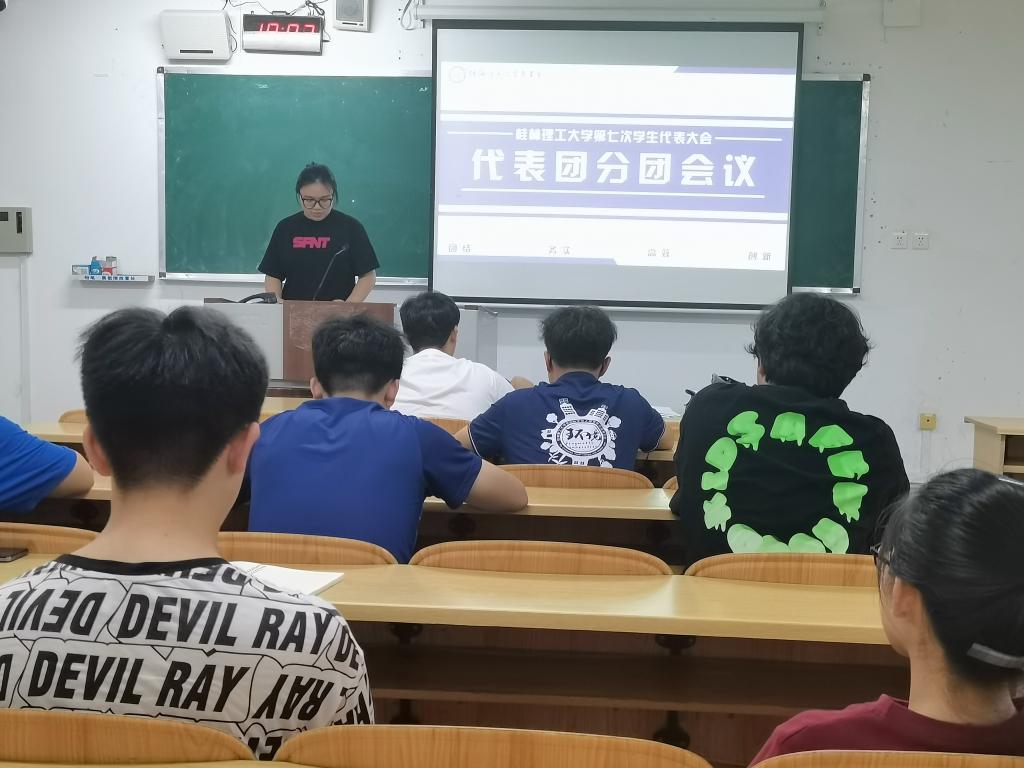 为确保我校第七次学生代表大会的顺利召开,6月7日晚19:00,我院代表团在05201召开分团会议。本次会议由代表团团长管梓彤主持,我院代表团全体学生代表参加此次会议。