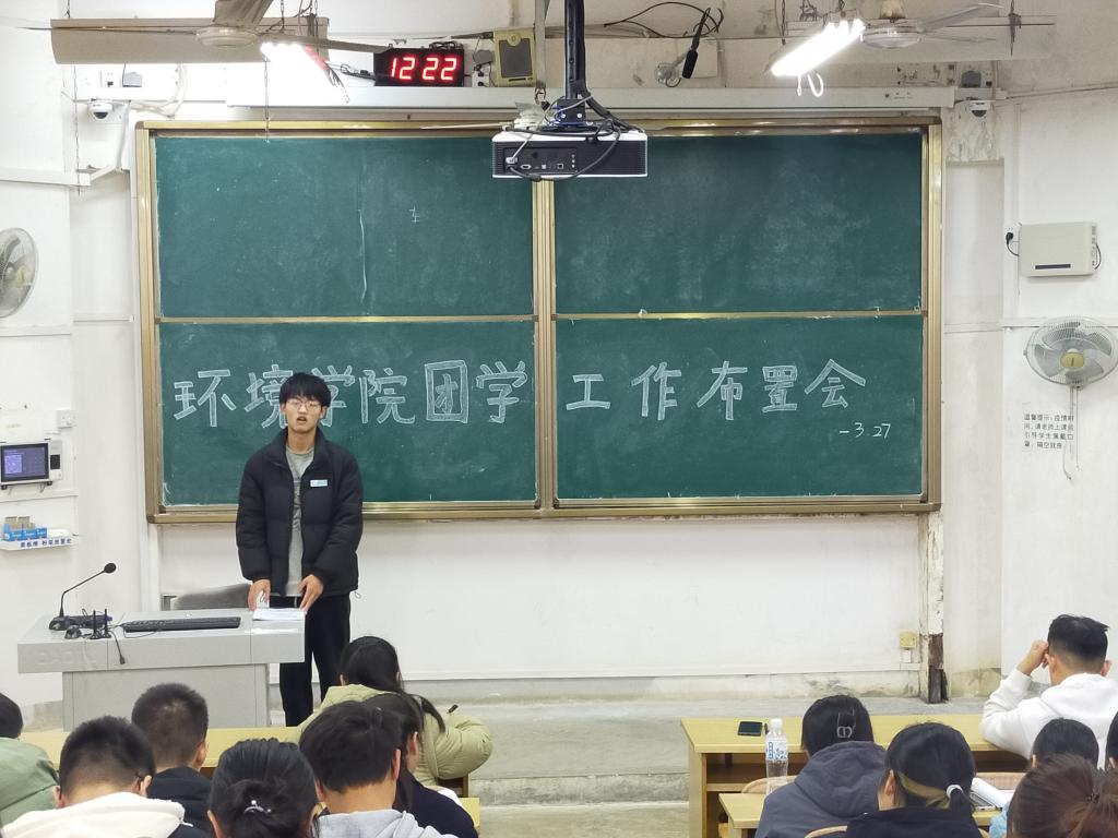 3月27日中午我院在4栋致远楼举行了环境学院团学工作布置会,例会由我院的学生会主席孙仁和同学主持,我院团委书记李心愿老师,团委副书记王媛老师、团委、学生会成员以及vi新媒体,明园舍管委,当家社的代表共同参与了本次会议。