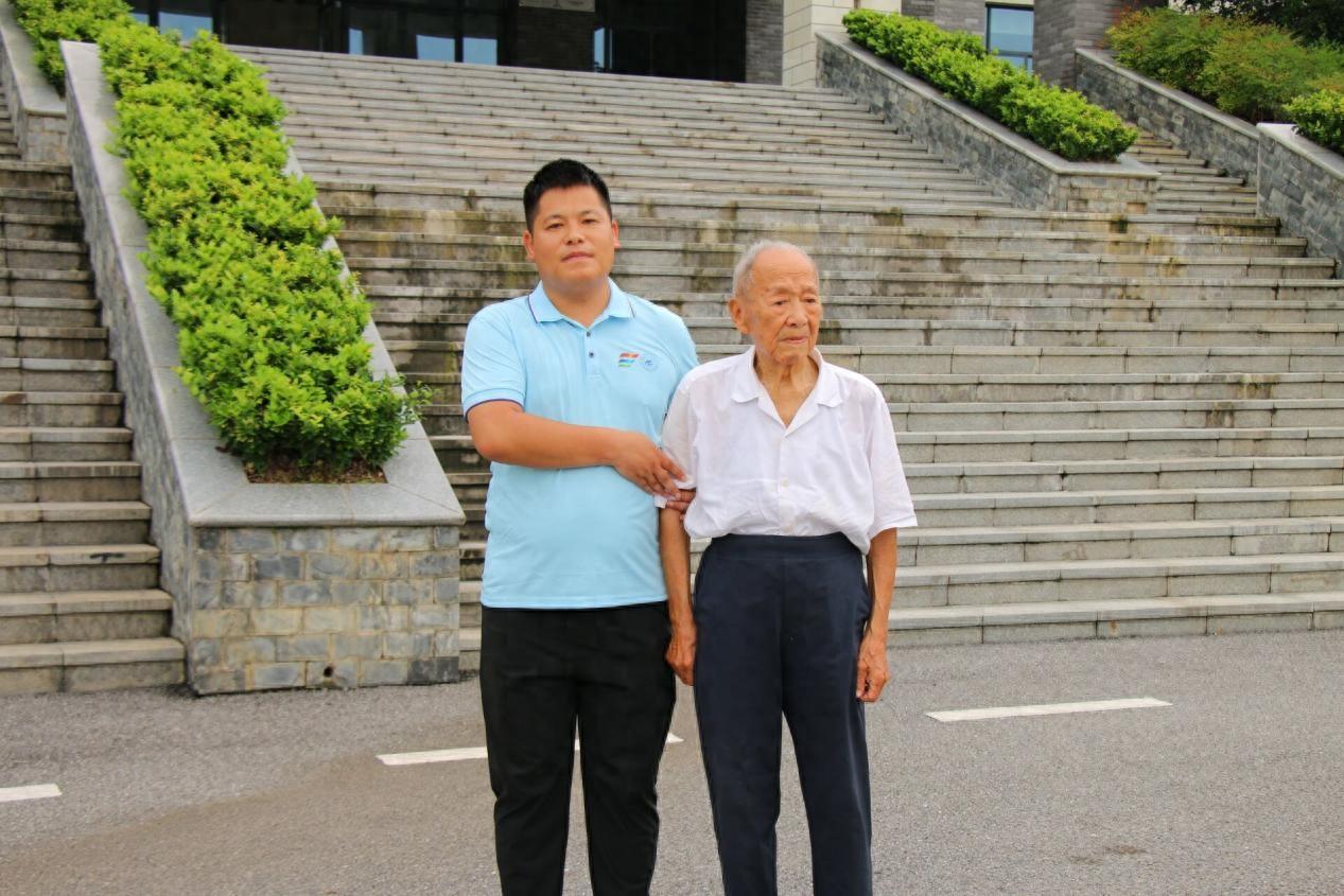 图为beat365手机版官网入口杨平平老师与老红军胡正先合照