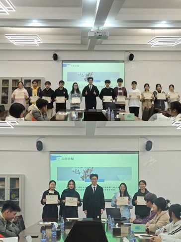 会议伊始,办公室学生助理负责人全面总结了本学期的工作,肯定成绩的同时梳理出了工作过程中存在的不足和需要改进的地方。随后,各部门负责人从“部门职责、工作情况、心得体会、未来规划”四个方面对本学期的部门进行了汇报。紧接着,董翼老师为本学期荣获“先进个人”以及“勤工助学之星”荣誉称号的办公室学生助理颁发奖状。最后,董翼老师进行总结发言,对助理们一学期以来的辛勤付出予以充分肯定与认可,并对新学期的工作提出了四点期望。一是遇到琐事不“琐碎”,要细心办理;二是遇到急事不急迫,要冷静应对;三是遇到大事不大意,要精心筹划;四是遇到难事不畏惧,要勇于创新。