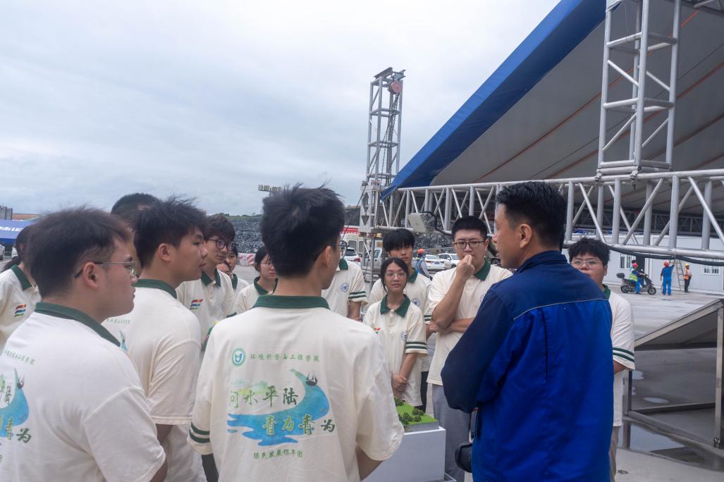 在互动环节,实践团围绕“绿色工程落地”提问,李主任以实例进行解答:工程通过塔吊能量回收系统实现势能转电能循环利用,配套污水处理系统对混凝土生产废水进行三级净化后回用,实现污水“零排放”。