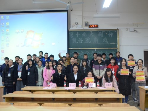 2017年11月24日晚19:30,学院“学十九大精神,筑环院新风”2017年宿舍装饰大赛决赛暨颁奖典礼在06206教室顺利举行。比赛邀请院团委副书记唐红兵老师、辅导员田明浩老师、贺旭霞老师以及我院团委学生会副主席钟仁智同学担任评委。
