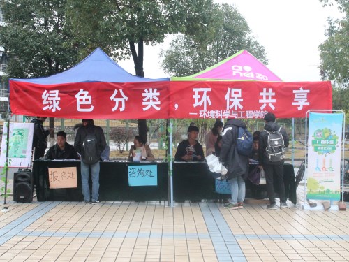 为了更好地让同学们养成垃圾分类的习惯,意识到节约资源在生活中的重要性,2017年12月14日,我院在雁山校区一号食堂、二号食堂设点宣传了以“绿色环保,垃圾分类”为主题的“共享垃圾桶”活动。