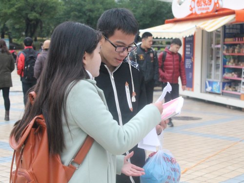 在宣传工作中,我院工作人员不惧天气寒冷,积极地向同学们发放宣传单,为同学们讲解有关垃圾分类的相关知识、宣传共享垃圾桶的益处。同时,在现场还设置了有奖问答活动,师生踊跃参与,收获了各种关于垃圾分类的小知识。据工作人员统计,截止宣传活动结束,我院共有104间宿舍报名参与了“共享垃圾桶”的活动,直接受益的同学达600余位。