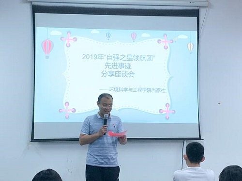 根据学校发展型资助育人分工安排,2019年6月14日晚,我院“自强之星领航团”先进事迹分享报告会在beat365手机版官网入口雁山校区9栋清和楼玻璃教室举办。这场分享报告会旨在邀请环院自强之星分享他们的青春故事,激励环院学子奋发图强。本次活动邀请了2016级博士研究生林局、2017级硕士研究生蔡健霞、给排水15–2班唐思婧、给排水17–1班钟书政等四位自强之星作分享,环境学院16级辅导员唐源江老师、当家社前社长黄琪、环境学院辩论队副队长董港波、环境学院宿舍管理委员会会长黄小霞、chatterbox英语社团社长农雅芝及学院家庭经济困难学生出席活动。