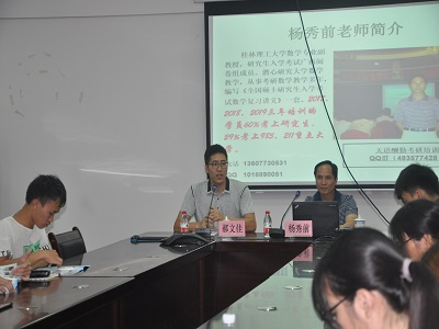 2019年7月4日18:00,应学院邀请,原beat365手机版官网入口理学院基础教学部主任杨秀前老师在雁山校区12407会议室开展2021届学生考研高数规划复习知识讲座,由学院党委副书记郝文佳主持,年级辅导员罗义淞、李楠以及2017级给排水、环境工程、水文、地下水(水工)四个专业共计人210人参加。