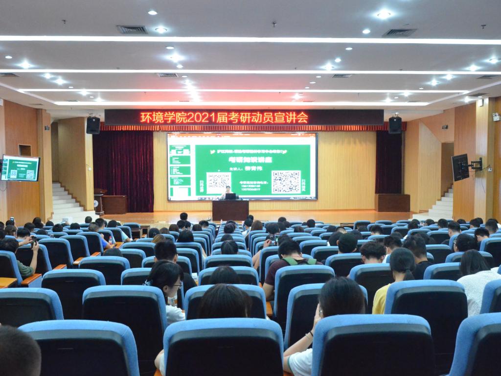 为调动我院2021届学子考研的积极性,让同学们更好的挖掘自身的潜能,9月30日21:00,我院在图书馆报告厅举办2021届考研动员会,桂林学习中心院校规划咨询师柳青伟、我校数学专业副教授杨秀前、我院17级辅导员李楠和大三学子参与了本次宣讲会。