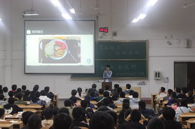 本次宣讲会是由从波兰游学归来的方正同学来为新生介绍波兰当地的怡人景色、风土人情,以及在游学中所学的内容。向同学们展示了波兰的特色建筑、以及著名的人文风景,在讲述过程中同学们连连惊叹它的美丽。接着又介绍了波兰的饮食风俗,并与中国的饮食风俗相比较,波兰的饮食相较于中国更偏向于清淡。随后他们向同学们讲述他们在波兰学校里所学的知识和学习过程中遇到的奇人趣事,还介绍波兰与中国在对待治理环境态度上的不同:波兰注重的是用自然来治理环境,中国则偏向人为治理环境。最后,他们鼓励同学们努力学习,将来加入“百名学子看世界”项目,学习世界各地的文化知识。