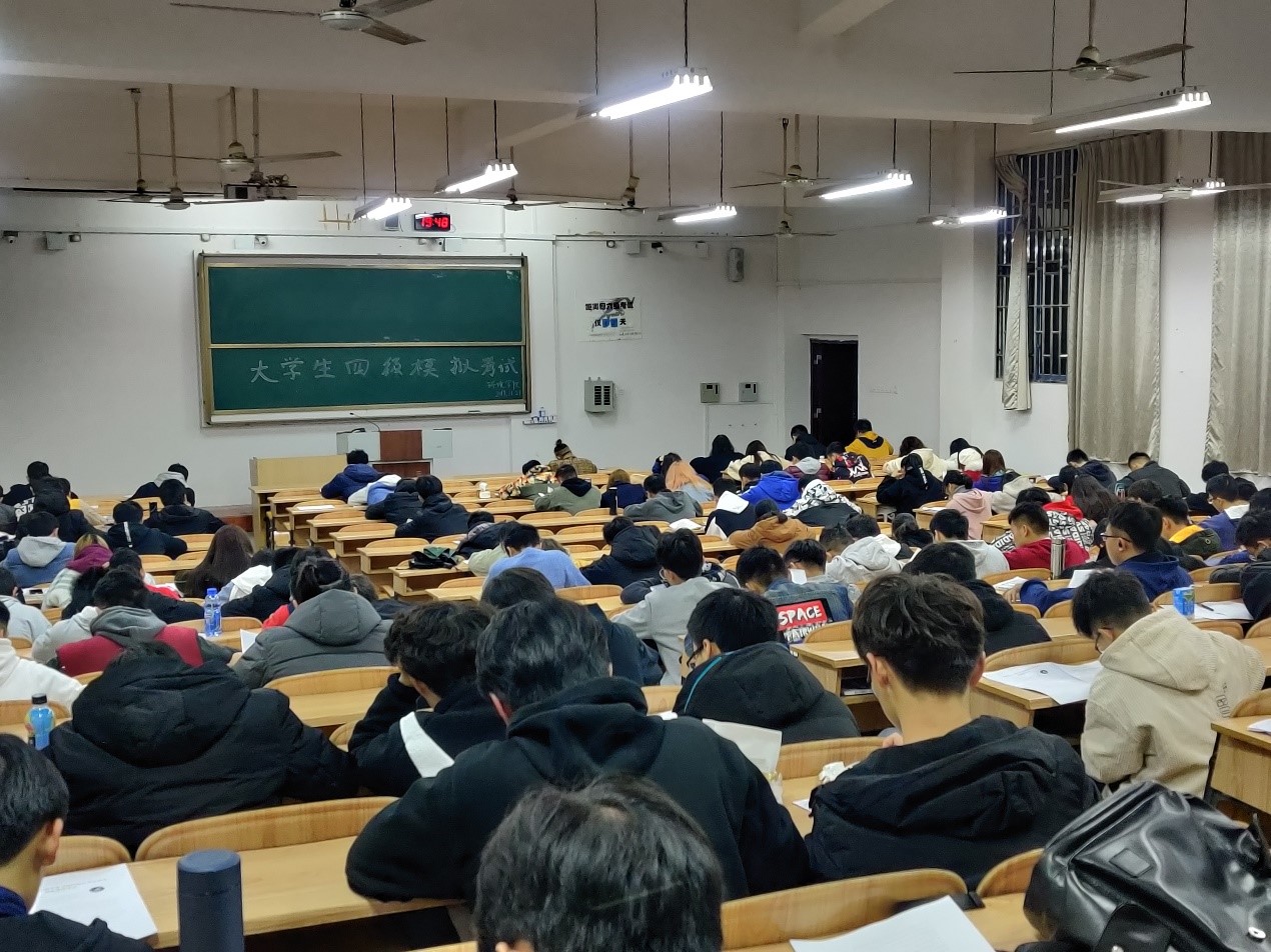 为了提高我院同学们对学习英语的兴趣,提高2019年12月大学英语四级考试的过关率,增强校园英语文化氛围,2019年11月27日,我院在雁山校区6栋409和4栋110教室举办四级模拟考试,2018和2019级参加四级考试的学生全部参与。