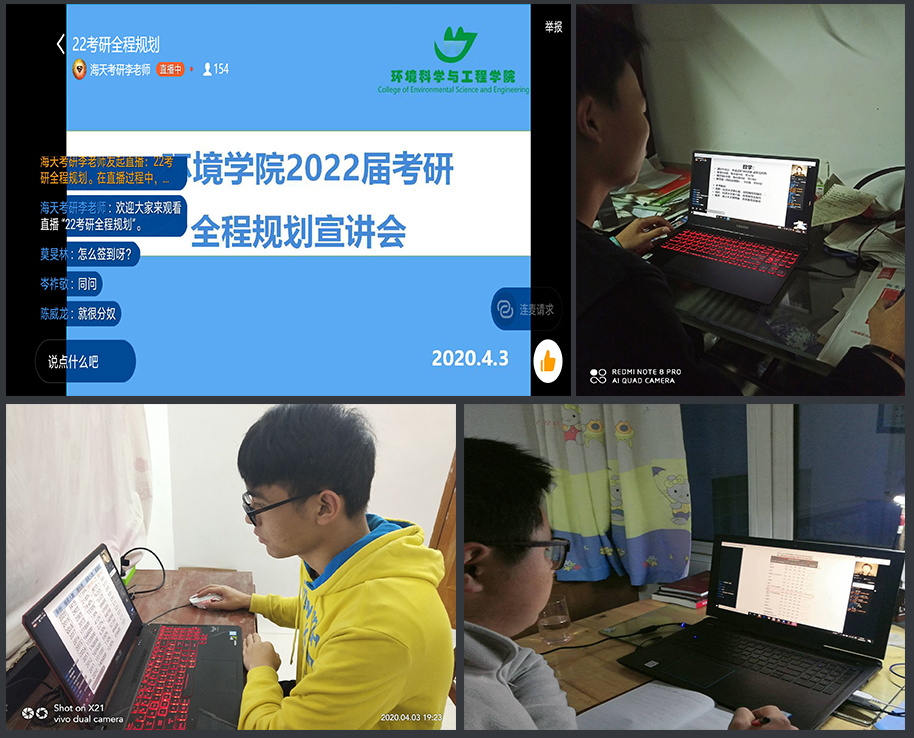 4月3日晚19:00,环境学院以钉钉直播的形式在线上举办 “2022届考研全程规划”讲座。讲座邀请海天考研院校专业选择规划师汪泽担任主讲人,学院18级有考研意向的同学参加了讲座。