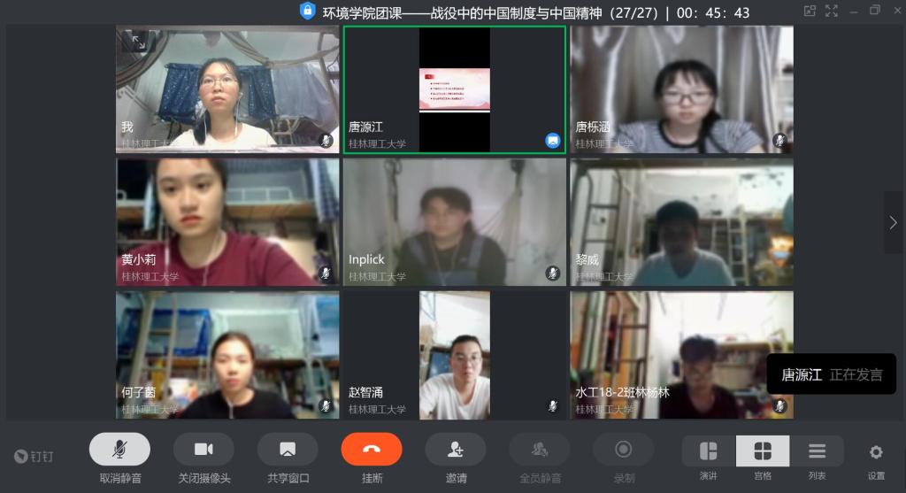 5月5日晚20:00,环境学院团委·学生会主要学生干部在线上举行了2020年春季学期的第一堂团课——战“役”中的中国制度和中国精神。团课由学院团委工作负责人唐源江老师主讲。
