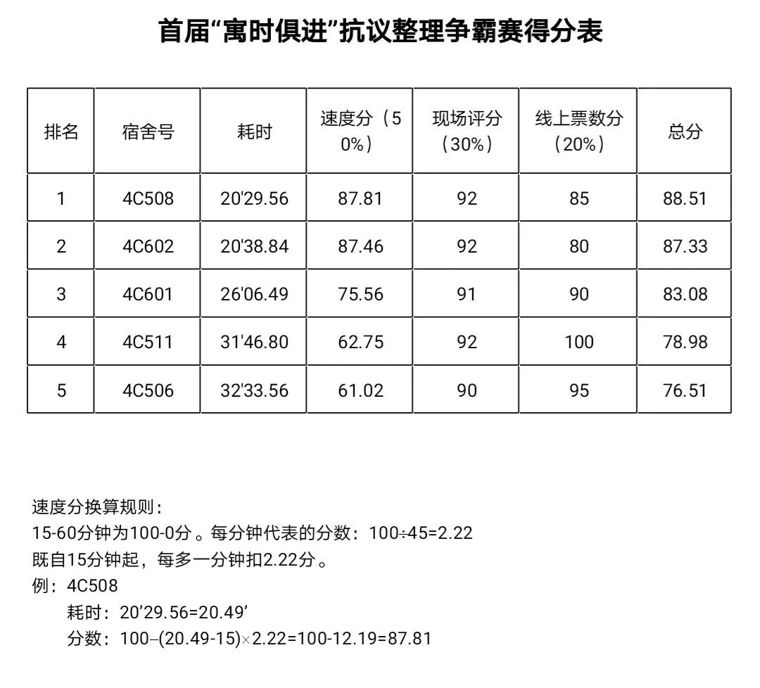 首届“寓时俱进”抗疫整理争霸赛得分表