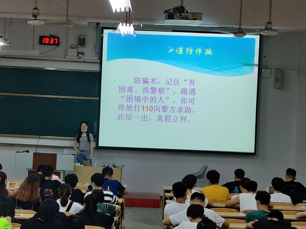 此次活动中,各年级辅导员老师首先给同学们放映了一部防诈骗的宣传片,视频中各种生动真实的案例让同学们对于诈骗的形式和常用手段有了充分的了解,提高了同学们的对于诈骗的认识。视频观看结束后,各年级辅导员老师总结并告诚同学们:“不管诈骗手段如何改变,一定要看清诈骗的本质!”提醒广大新生们提高防范意识,遇到电话或者网络诈骗采取不理会或者举报的方式,切莫因贪小便宜的心理而遭受损失。