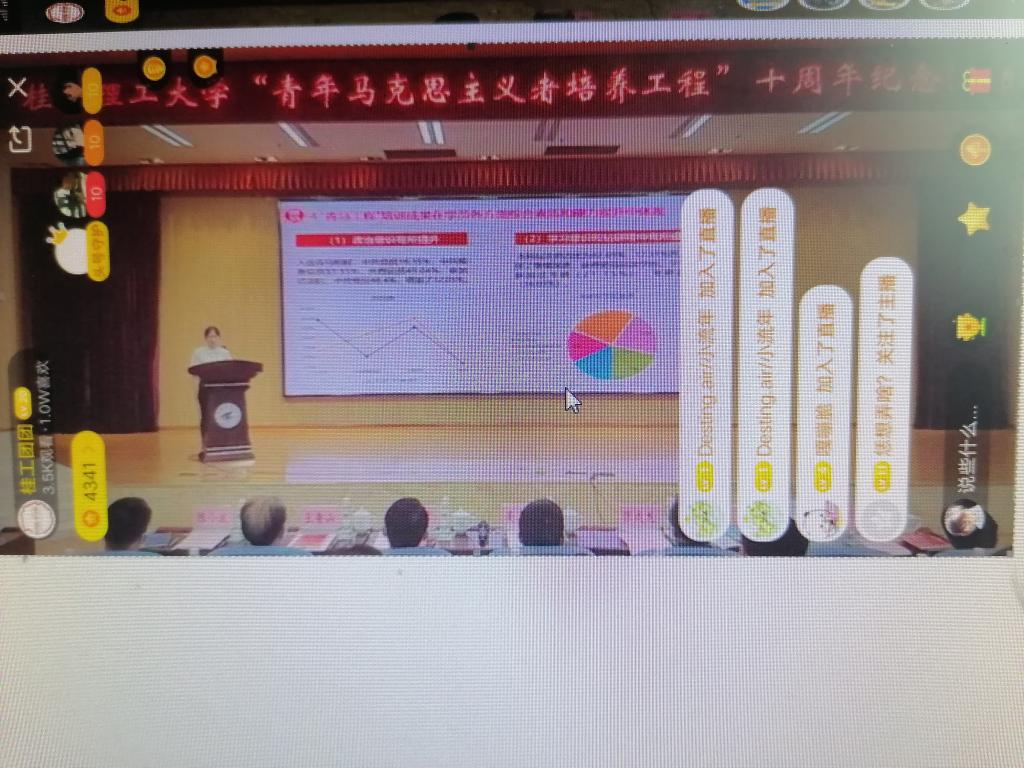 其中,优秀学员代表黄雷分享了培训心得,表示通过培训深化了对马克思主义及中国化理论成果的认识,将积极参加青年大学习,投身共青团改革,做马克思主义的坚定信仰者、忠实践行者。作为一个共青团员,从对青年马克思主义者培养工程没有一点概念到舍友参加青马培训,我从她那里了解了该工程是培养桂工优秀共青团员的,我逐渐对该工程高兴趣,今天有幸参加青年马克思主义者培养工程的十周年纪念活动,尽管只是线上分享,我没有感受到纪念分享会的氛围,我还是很高兴的。