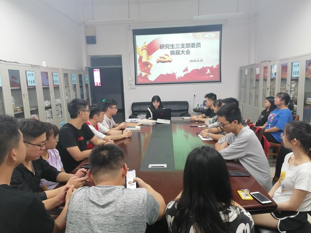 2020年9月17日,我院研究生第三党支部于雁山校区12414会议室召开支部委员换届选举大会,支部全体党员参加本次大会。