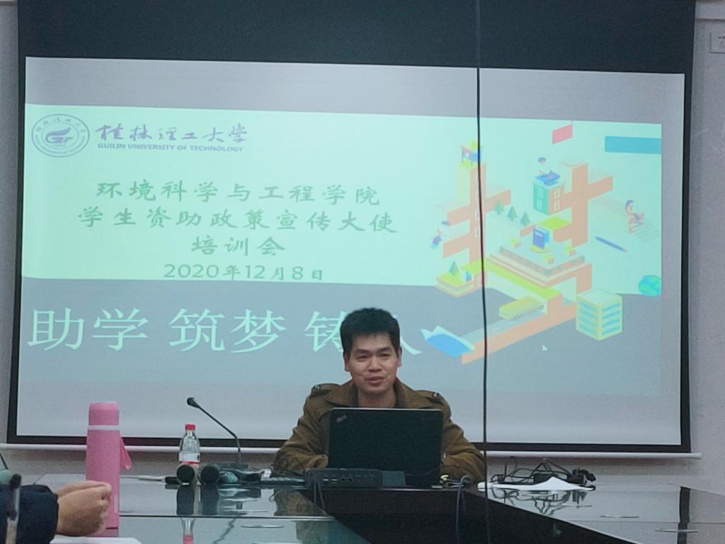 为加大学生资助宣传力度,全面落实国家与学校相关资助政策,更好的做好资助政策的传播者。我院于12月8日晚在12408会议室举行了学生资助政策宣传大使培训会,培训会由我院负责资助老师孙云龙主持、主讲,环境学院资助政策宣传大使候选人参加此次培训。