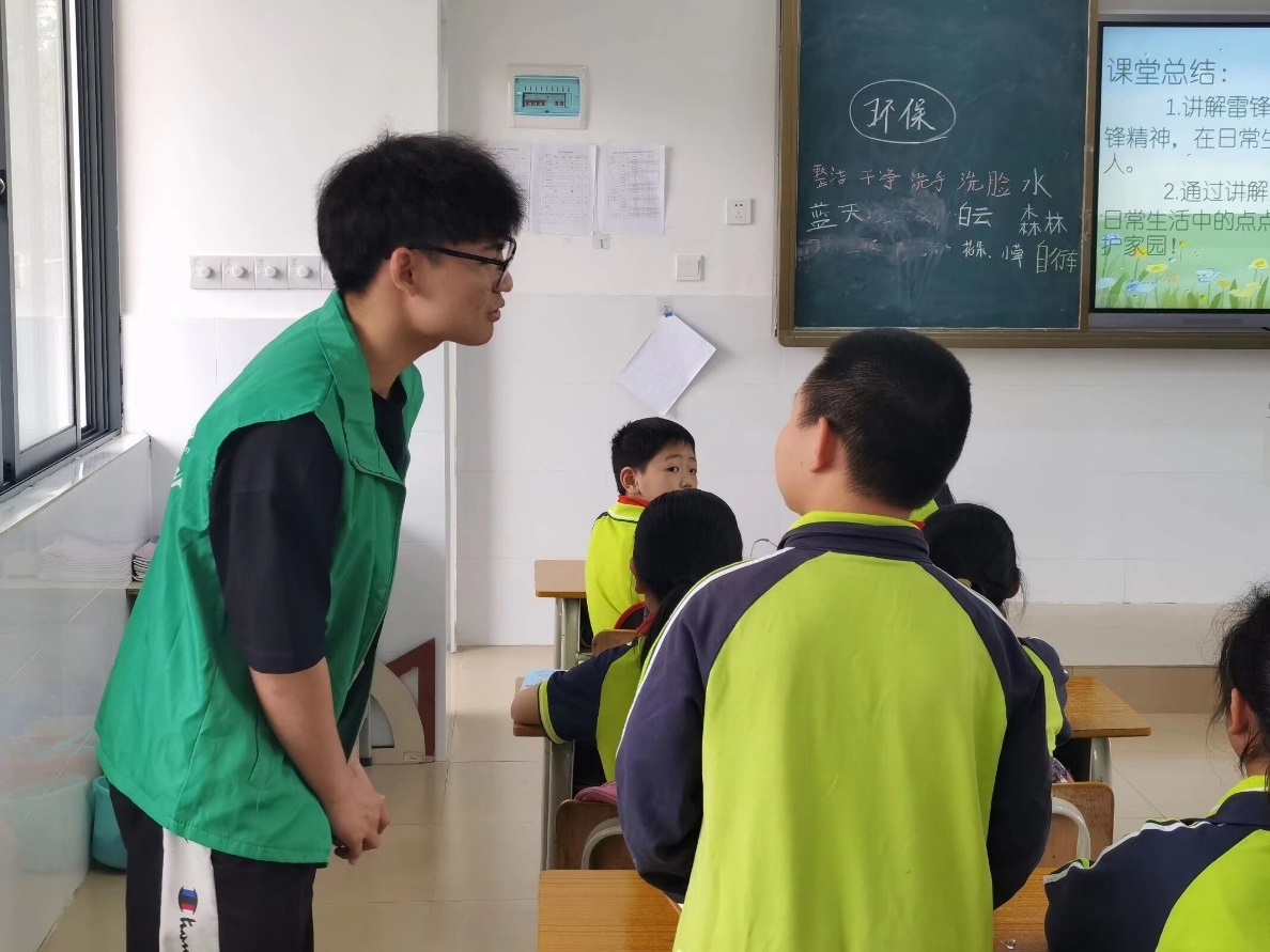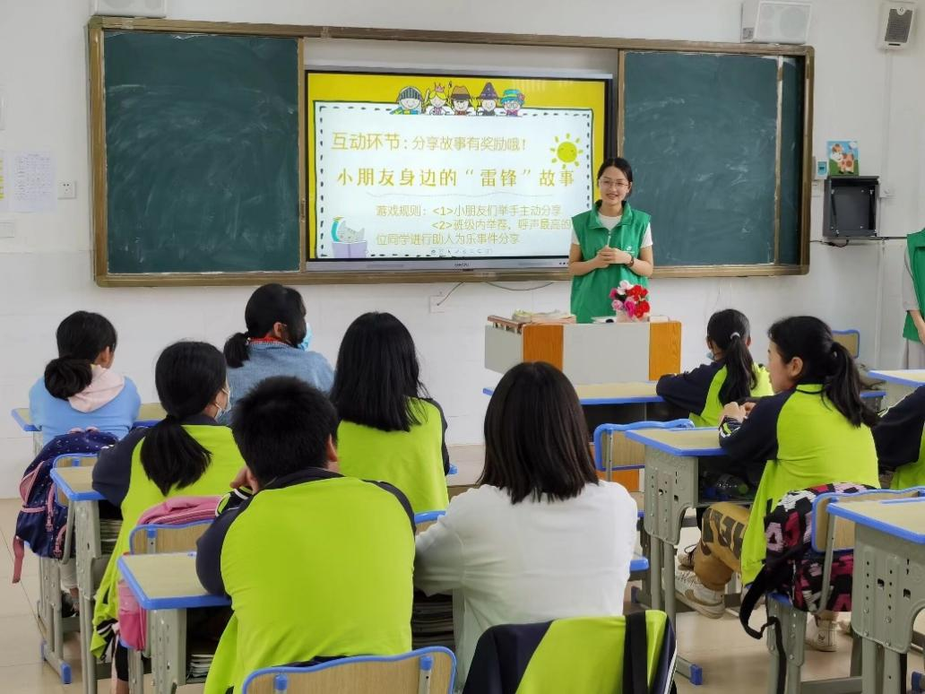 由我院团委·学生会的八名志愿者组成的支教团于4月2日12:50统一乘车前往北芬小学,下午14:00开始授课,本次共有4班级参与活动,主要围绕传承雷锋奉献精神,践行环保理念的为主题,课堂上支教团的成员们为小学生们介绍了雷锋的英雄事迹和保护环境的相关知识。课堂上,同学们求知若渴,积极踊跃地回答问题。
