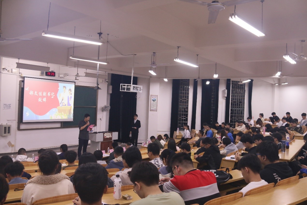 比赛开始前,学院党委副书记郝文佳发表讲话,他首先向参加本次活动的评委老师和同学们表示热烈地欢迎,向参加本次比赛的选手表示诚挚地祝贺。随后总结了一年来我院资助工作在学校的领导下,取得的良好成绩。最后对在场人员提出了两点希望:一是希望学工老师,要铭记立德树人的根本任务,全面贯彻落实各项资助政策, 在各自的岗位上,发挥模范榜样作用;二是希望全体受资助同学,要知恩感恩,要肩负起时代赋予的责任,投身于伟大中国梦的建设之中,用智慧和成绩来回报党和国家。