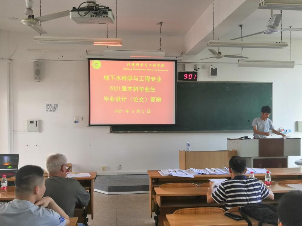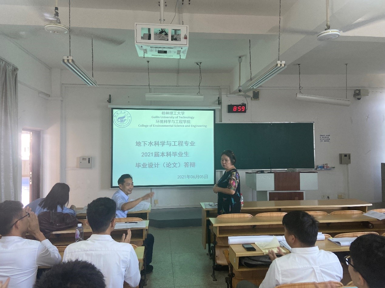 2021年6月5日,我院2021届地下水科学与工程专业本科毕业生论文(设计)答辩大会分别在雁山校区06413、06414和06515共3个会场有序进行。本次大会邀请了高级工程师蒋文德、高级工程师白显嵩、高级工程师丁凯共3位校外专家与校内专任教师组成了三个答辩小组,覃志杰、雷钰、宾林强等66名本科生参加了此次答辩。