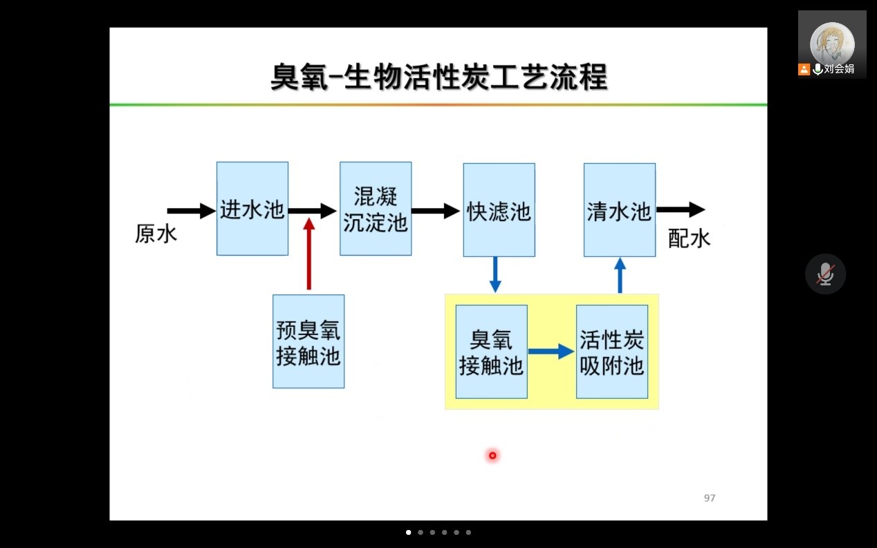 刘会娟教授以“饮用水安全保障”为主题,详细介绍了饮用水有机污染物和微生物与人体健康的关系、饮用水的常规处理工艺、强化常规处理工艺和几种典型的深度处理技术,深入解释了不同工艺对饮用水中天然有机物和消毒副产物等有机污染物的去除原理。刘会娟教授结合自己的科研经历,对饮用水的化学污染控制以及水质安全保障相关理论和技术体系做了深层次的分析,重点对活性炭在饮用水处理的应用、活性炭的制备和性能进行了全面的介绍;另外,提出了污水处理过程中将有价值的物质资源化的治理理念,使水处理工艺向着更安全、更经济的方向发展。授课结束后,学生们以饮用水安全相关的问题(如浸没式超滤膜清洗方法、井水水源过滤等)与刘会娟教授进行了交流,拓宽了视野、增长了见识。
