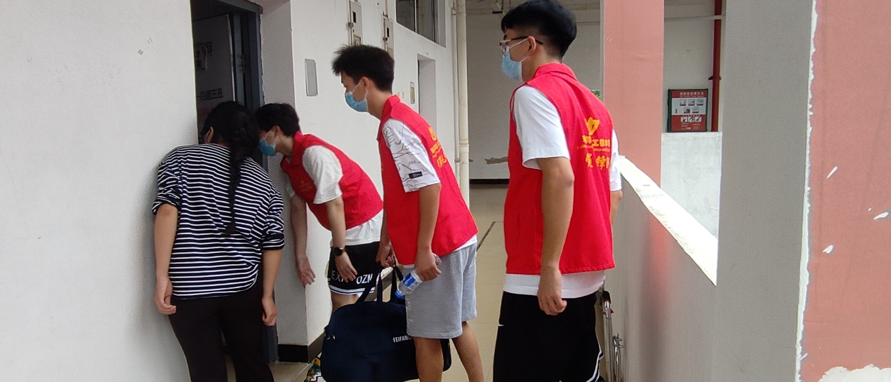 时至正午,艳阳高照,新生人流量大,行李众多,学生党员们投入到志愿服务的忙碌中,肩扛手拎齐上阵,汗水早已浸透衣服,他们却热情不减,一抹抹亮丽的红色在人群中穿梭,为学院的迎新工作增添了一道道亮丽的风景线。