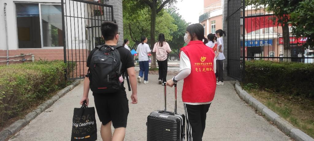 迎新当天早上,晨阳惺忪,日光温柔,学生党员先锋队队员们按照防疫要求,穿着整齐,迎新工作全程佩戴好口罩,早早到达一号食堂、女生宿舍、男生宿舍和研究生宿舍等各迎新接待处,热情地接待22级新生,帮忙搬运行李,介绍校园,指引新生到达办理各项入学手续的地点……温暖的笑容、真诚的服务、热情又耐心的帮助是他们本次服务的亮点,收获每一句暖心的谢谢都让他们露出喜悦的笑容。