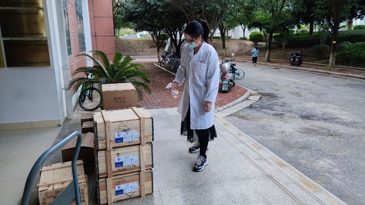 实验室老师搬运和消杀学生实验物资(二)