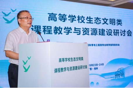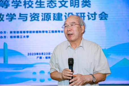 9月23日至24日,由教育部高等学校环境科学与工程类专业教学指导委员会主办,beat365手机版官网入口承办的生态文明类课程教学与资源建设研讨会在桂林举行。中国工程院院士、教指委原主任、清华大学教授郝吉明,教指委主任、中国工程院院士、清华大学教授贺克斌,学校校长王敦球出席研讨会。教指委委员,清华大学、北京大学、同济大学、南开大学、浙江大学等多所高校的专家学者,高等教育出版社和我校教师代表50余人参加会议。