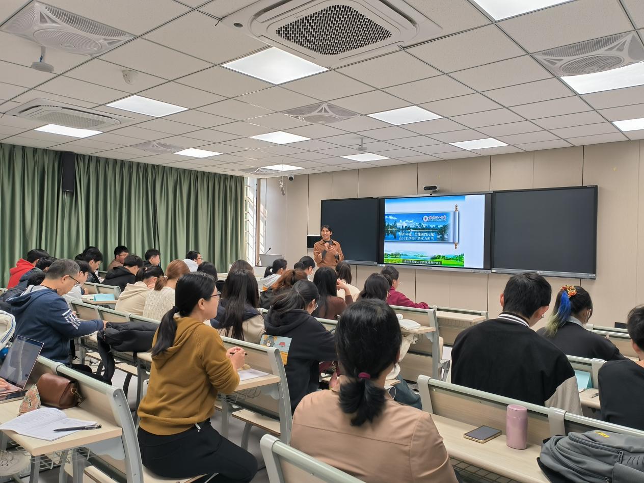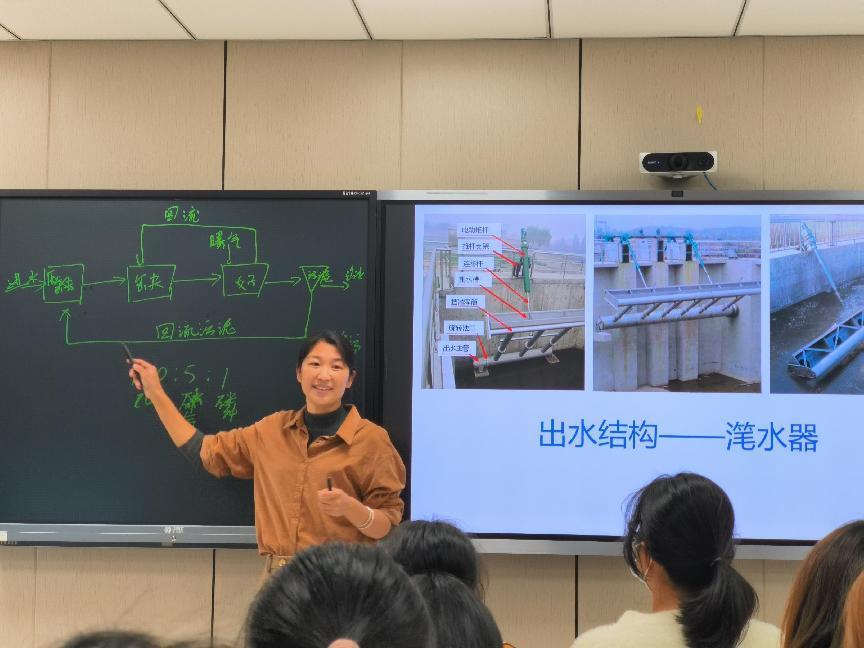 课堂上,白少元老师讲解了AAO和CASS两种水处理工艺及生物膜法净化设备、污泥处理与处置等知识点,并把面向碳中和的低碳水处理工艺与运行技术等内容引入课堂。白老师的讲授由浅入深,同时穿插提问和练习,师生间互动氛围较好,充分调动了学生的积极主动性,体现了以学生为中心的教学理念。此外,白老师结合自己在水处理研究领域的科研实践和成果,鼓励学生献身环保事业。
