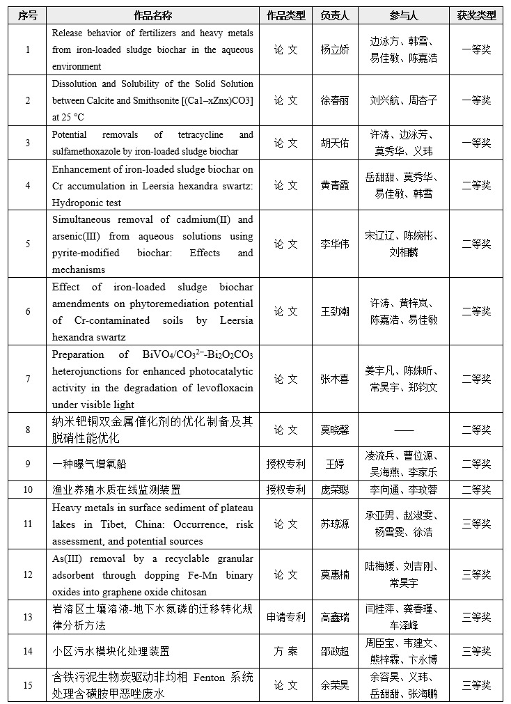 为提升学生的水安全意识和水环境科技思维,推进大学生创新创业思维发展,beat365手机版官网入口给排水科学与工程教研室举办2023年(第六届)水环境与水安全科技创新大赛。本次大赛所设参赛作品分为论文类、专利类、方案类和产品类,共有42份作品参加本次大赛。经多学科交叉评审组评议,从作品的专业相关度、科学性、创新性、应用价值以及学生贡献率方面,参照评分标准进行综合评价,评选出一等奖3项、二等奖7项、三等奖11项。具体获奖名单如下: