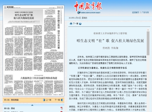中国教育报报道我院构建生态文明教育教学体系相关做法