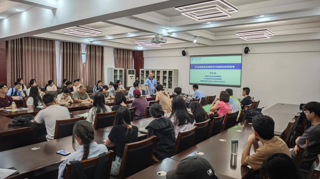 2024年6月3日,学院邀请中南大学冶金与环境学院薛生国教授在雁山校区萃华楼12407会议室作了题为“金属矿冶场地生态修复与污染防治研究思考”的学术报告。报告会由朱宗强副院长主持,学院部分教师和学生聆听了本次报告。