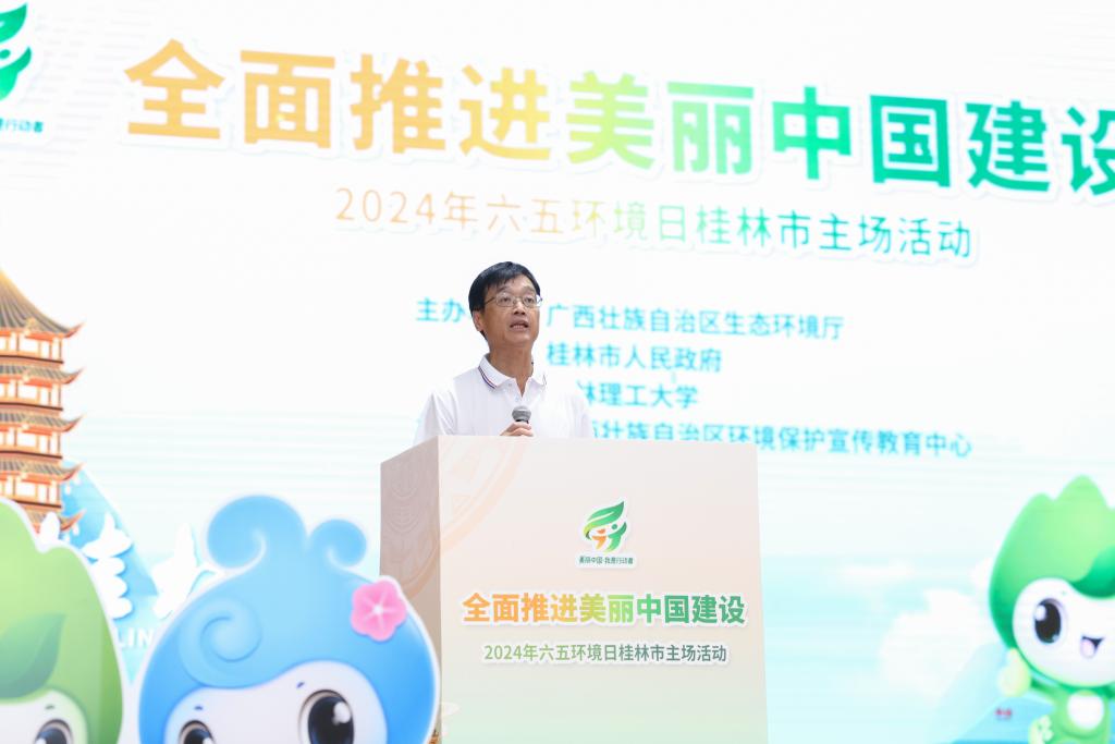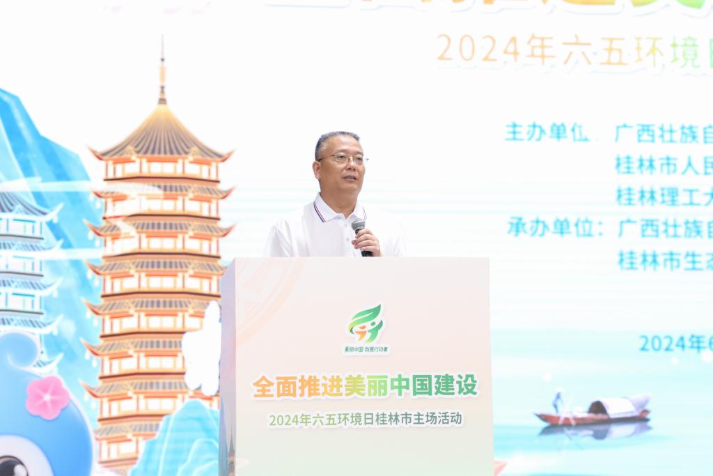周作智在致辞中表示,近年来桂林市始终坚持深入学习贯彻习近平生态文明思想,持续举办“4·25漓江保护日”“六五环境日”等系列活动,坚决当好保护漓江、保护桂林山水的“二郎神”。他指出,桂林市将以打造世界级旅游城市为统揽,以美丽城市建设为着力点,坚持把科学保护漓江、保护桂林山水作为生态立市战略的重中之重,推动生态环境质量改善从量变到质变。希望全市上下以此次活动为契机,做美丽桂林建设的“宣传员”和“实践者”,学习传播生态文明理念,积极参与环保公益活动和志愿服务,共同传递环保正能量,在全面推进美丽中国建设的新征程上书写更加绚丽的桂林新篇章。