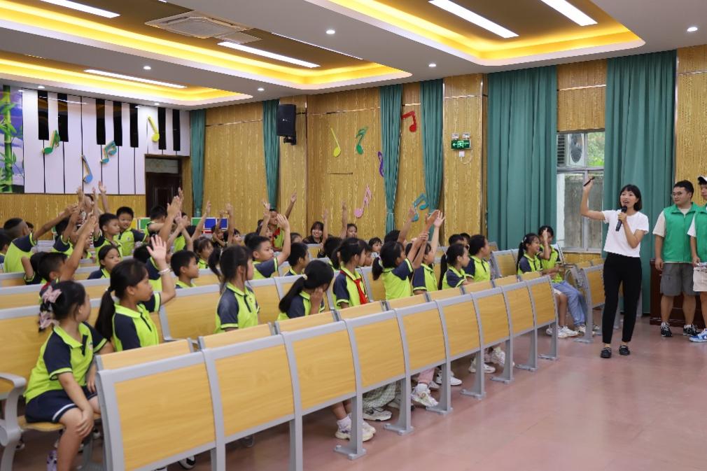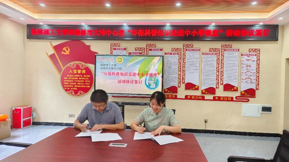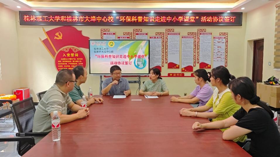2024年全国科普日的主题是“提升全民科学素质,协力建设科技强国”。为深入贯彻落实习近平生态文明思想,弘扬科学精神,建设环保文化,传播绿色理念,9月19日下午,我院举办了“环保春天行”系列活动之环保科普进小学。李海翔副院长带领我院环保科普师生志愿者团队,前往桂林市大埠中心校开展环保科普宣传教育活动,本次活动共分为科普教育合作交流座谈、环保科普小课堂、环保科普小游戏3个环节。
