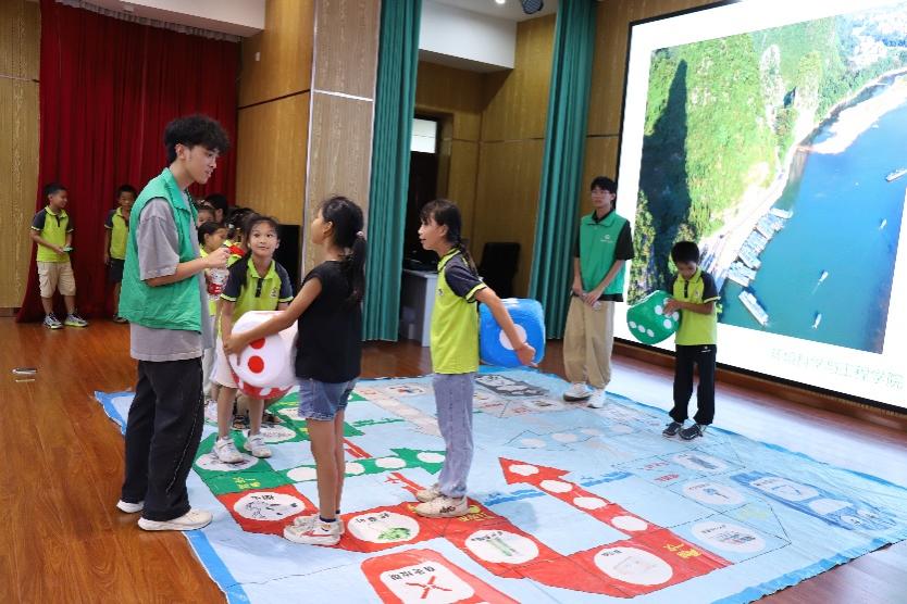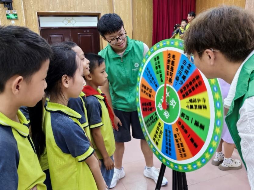 志愿者们还与小朋友们开展了“垃圾分类投一投”、“垃圾分类套一套”、“环保大转盘”和“环保飞行棋”等环保科普小游戏,通过寓教于乐的方式,让小朋友们在游戏中学习环保科学知识,鼓励他们在日常生活中主动实践环保。