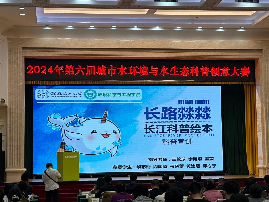本次大赛决赛,共收到数百份参赛作品,经过组委会专家组的初评、会评、复评层层筛选,最终评选出16支参赛队伍进入决赛。我院参赛作品《长路“㵘㵘”》绘本主要讲述了长江精灵“㵘㵘”与鱼儿们在游历长江的过程中,学习长江生态知识并呼吁保护长江的故事。在现场展示环节中,参赛队员沉着冷静、机智应对,充分展现了桂工学子良好的精神风貌和专业素养。