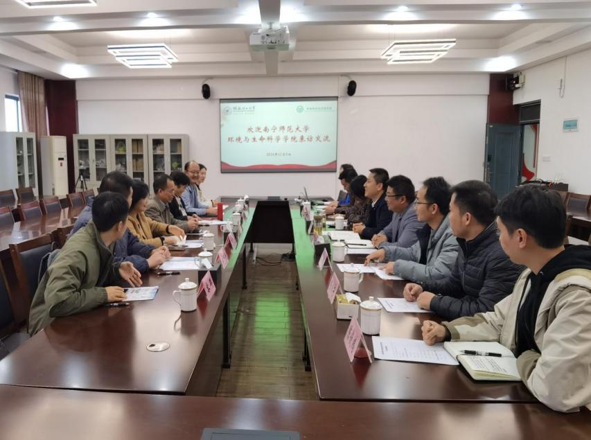 12 月 5 日下午,南宁师范大学环境与生命科学学院党委书记韦东林、副院长张新英、张忠华等一行 7 人到我院开展交流座谈。我院党委书记代武社、院长曾鸿鹄、副院长李海翔、朱宗强以及各教研室、实验室主任参与了此次座谈交流。