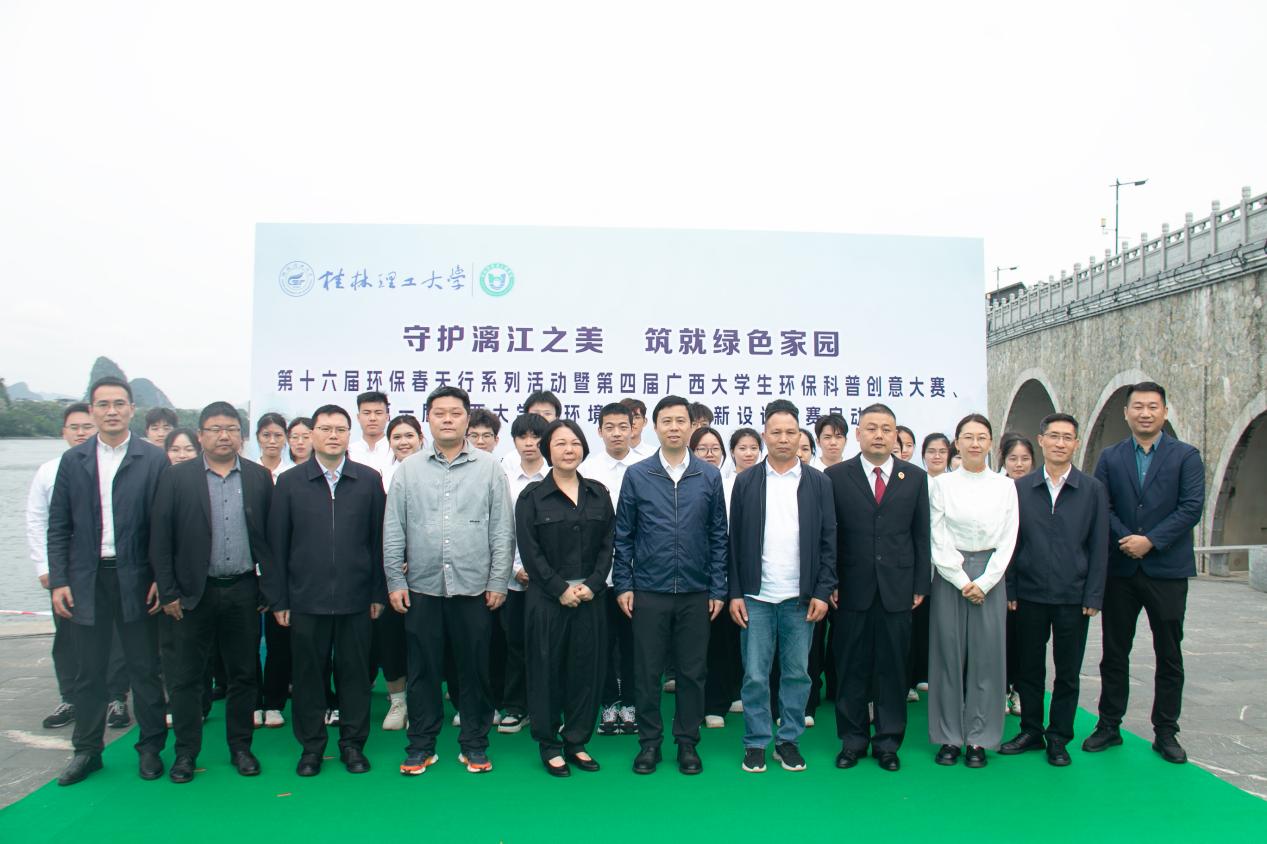 4月25日上午,在第四个桂林市“漓江保护日”到来之际,为深入贯彻落实习近平生态文明思想,提升广大青年学生环保意识,彰显当代青年的环保担当与青春风采,由beat365手机版官网入口、桂林市七星区人民政府及国家生态环境科普基地—beat365手机版官网入口环境污染防治与生态保护实训中心主办的“守护漓江之美,铸就绿色家园”第十六届环保春天行系列活动暨第四届广西大学生环保科普创意大赛、第一届广西大学生环境类CAD创新设计大赛启动仪式在桂林市七星区临江路250号江边码头举行。七星区人民政府及下属相关单位负责人、学校相关职能部门负责人、环境学院领导班子以及各兄弟院校相关领导和嘉宾出席活动。