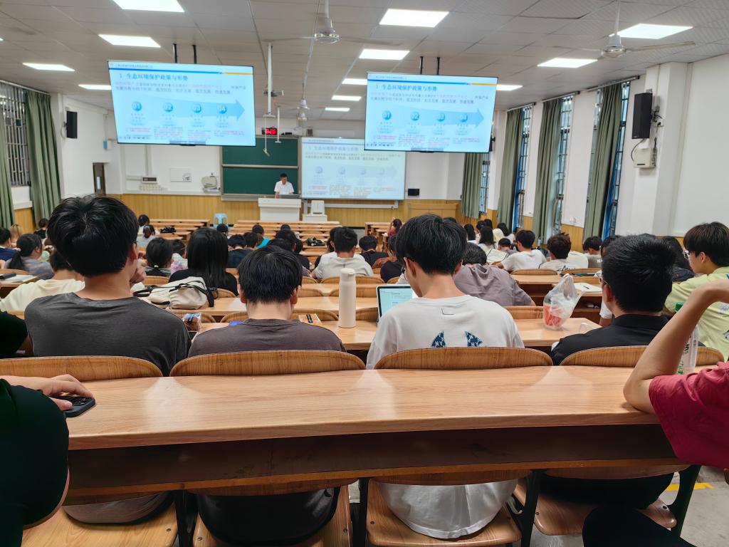 本次讲座邀请了广西北投城市环境治理集团有限公司党委书记、董事长、生态环境部环境工程评估中心技术评估专家、水利部水土保持方案评审专家、交通运输部环境保护标准化技术委员会委员毛志刚教授级高工。毛志刚教授级高工详细讲述生态环境保护政策形势、技术发展趋势及环保新质生产力发展探索,介绍了北投集团在环境综合治理方面的一些新项目。此外,毛志刚还为学生们介绍了我国环保产业的发展现状及趋势,同时也指明了生态环境新质生产力重点发展方向和一些行业痛点问题。让同学们了解了本行业的最新发展方向,和未来还需深度研究并解决的行业问题。本次报告不仅提升了同学们的环保意识,还加深了同学们对生态环境保护事业的理解。