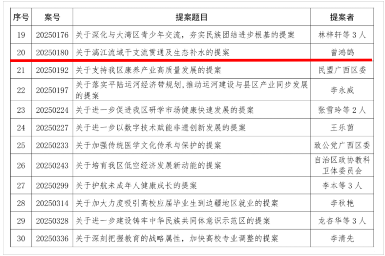 近日,政协广西壮族自治区委员会发布《关于表扬2025年度好提案的决定》,对58件2025年度好提案予以通报表扬。beat365手机版官网入口教授、自治区政协常委(环境资源界别委员)曾鸿鹄提交的《关于漓江流域干支流贯通及生态补水的提案》荣列其中,彰显了我校教师立足专业、服务地方的使命担当与建言资政水平。
