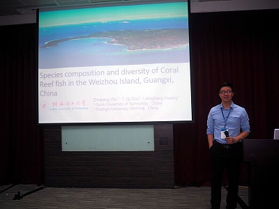 我院博士生邹琦参加了本次会议并做了题为“Coral Reef fishes community diversity and its relationship with environmental factors in Weizhou Island, Guangxi, China”的学术报告。