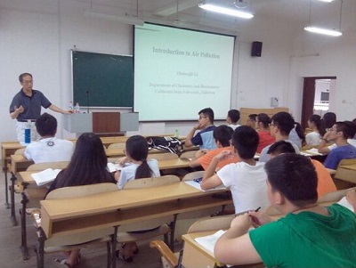 李教授首先简单介绍了自己在国外求学及工作的经历。然后从大气组成、大气污染分类、大气污染物的种类、大气污染的危害、大气污染防治等方面详细讲述了大气污染的相关知识。授课过程中不断引入中国和国外在大气污染控制方面所做的工作,极大地激起了同学们对大气污染控制的兴趣。