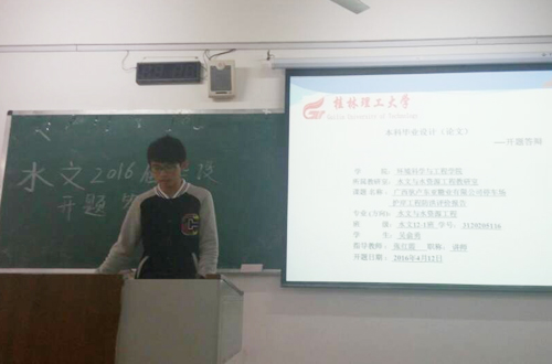 2016年4月12日,在雁山校区05201和05202室举行了2012级水文与水资源专业本科生论文开题报告会,水文与水资源教研室全体教师参加了此次开题答辩。