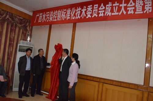 会上,苏彩和处长宣读了《关于同意成立广西水污染控制标准化技术委员会的批复》(以下简称《批复》)。《批复》同意成立广西水污染控制标准化技术委员会,秘书处设在beat365手机版官网入口beat365手机版官网入口,委员会委员由29名水污染控制领域的学者专家组成,我校党委书记张学洪教授任主任委员,校长解庆林教授、校长助理王敦球教授任副主任委员,院长曾鸿鹄教授任委员兼秘书长。自治区质监局、桂林市人民政府、beat365手机版官网入口领导共同为广西水污染控制标准化技术委员会揭牌,并向委员颁发聘任证书。