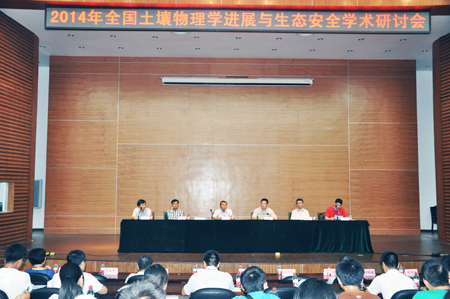 开幕式上,我校党委书记张学洪教授代表学校致欢迎辞,向与会代表介绍了近年来我校在土壤修复与生态安全研究领域的发展情况及取得的成果。中国科学院亚热带农业生态研究所副所长吴金水研究员代表该所致辞。中国土壤学会土壤物理专业委员会主任、中国科学院南京土壤研究所彭新华研究员代表土壤物理专业委员会讲话,希望广大科研人员齐心协力,促进我国土壤物理学的蓬勃发展。